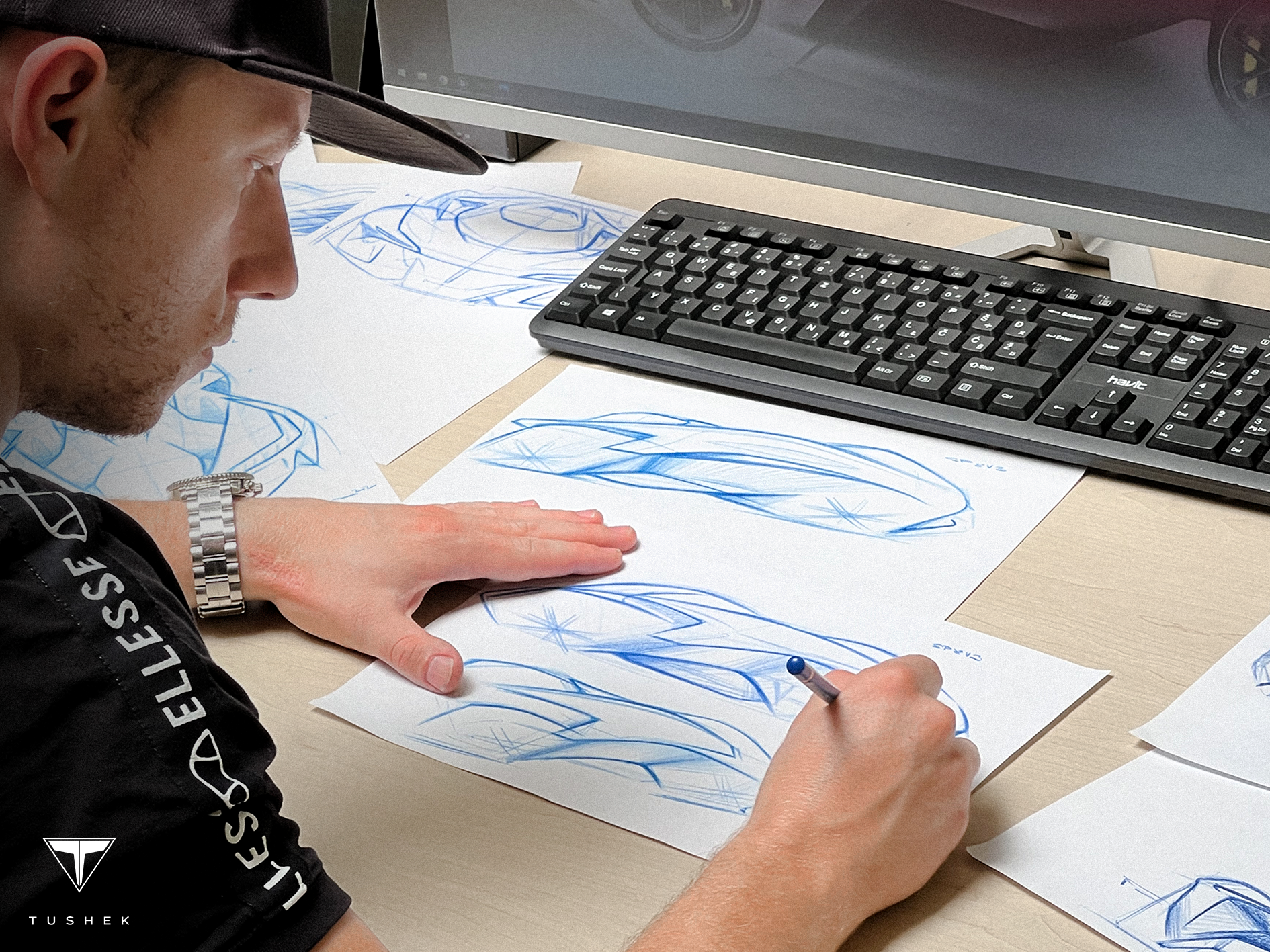 The result is a futuristic reinterpretation of Tushek historical design elements, refined and adapted for the extreme aerodynamic performance central to future Tushek models, combined with new, unique elements that represent the future of Tushek brand.