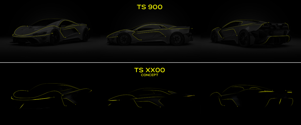 Such principles of design have also led to the creation of the TS 900 line, first presented in 2018 with a 1 : 1 power to weigh ratio, later updated in 2020 with the introduction of the upgraded TS 900 Racer Pro version, with a 1,13 : 1 power to weigh ratio, which is still the holder of the “Lightest Hybrid Hypercar” in the market, despite numerous established manufacturer brands trying to achieve at least the same performance.
