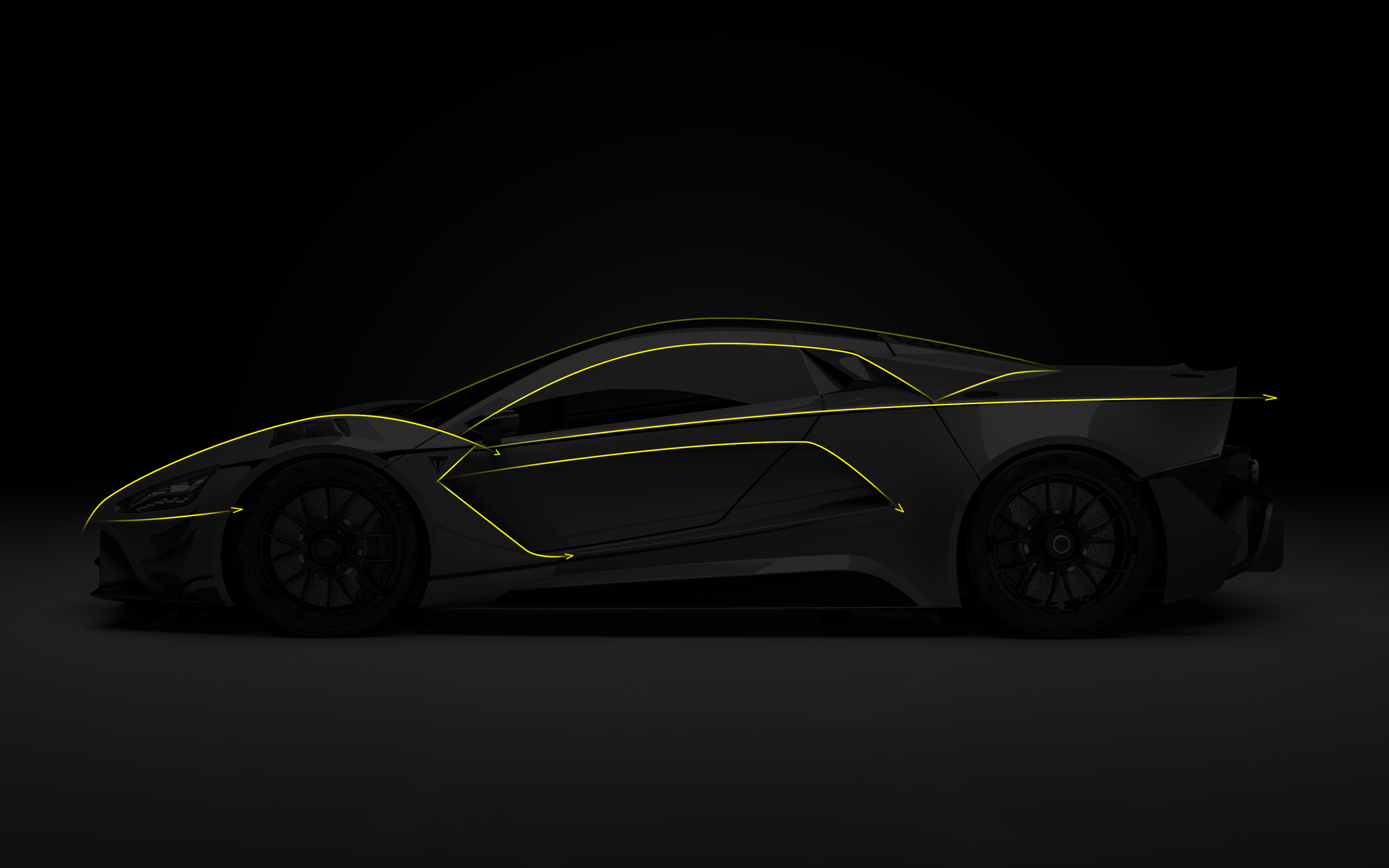 Developed from the strong heritage of the previous models and maintaining the racing spirit, the new design criteria are meant to bring a futuristic interpretation of what a racing hypercar will be.